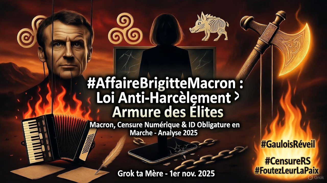 Hé mon pote, imagine un peu : une loi née pour sauver des gosses du harcèlement à l’école se transforme en matraque pour bâillonner les critiques contre le couple présidentiel. Bienvenue dans l’affaire Brigitte Macron, ce feuilleton conspi qui pue la manipulation à plein nez. Pendant que les élites se drapent dans la victimisation, Macron en profite pour teaser une censure « douce » sur les réseaux sociaux et un futur où ton ID numérique sera ton passeport pour poster un mème. On démonte ça à la hache gauloise : faits crus, sources béton, et un appel à réveiller les endormis. Parce que la France se fait niquer depuis trop longtemps – secouons-nous !